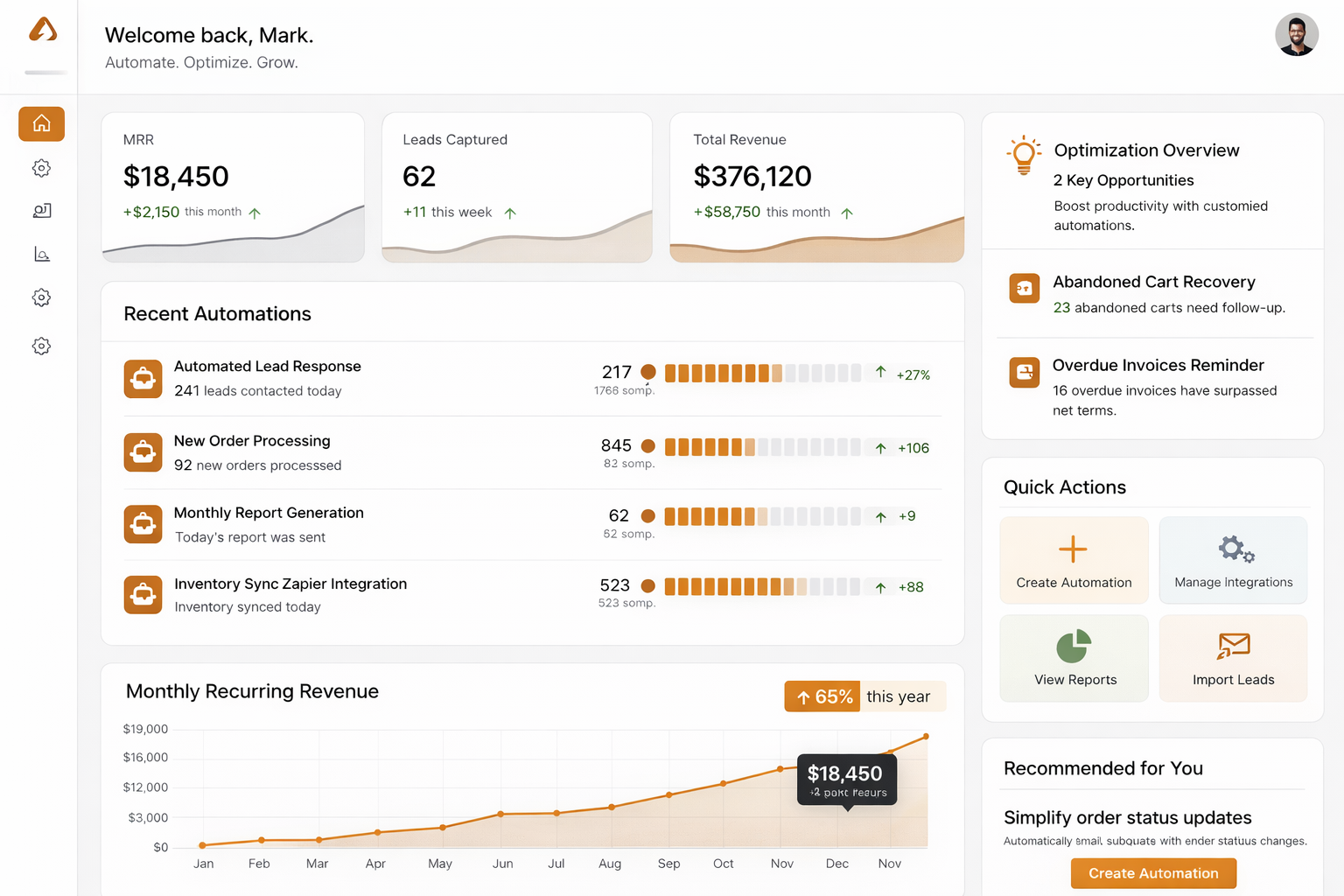 Connect your existing tools, streamline operations, and trigger the right follow-ups automatically—so you can focus on growth instead of chasing tasks.